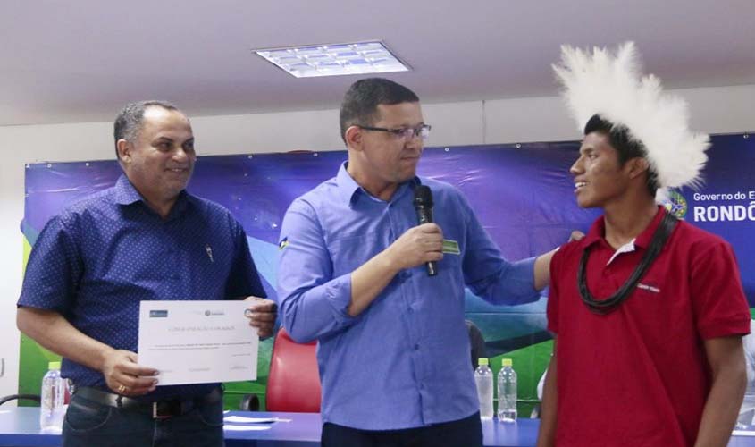 O governador também comemorou os bons resultados que os alunos da rede pública estadual tiveram no Enem devido as novas ações implantadas pela Seduc. Um desses estudantes é Agrael Suruí, 17 anos. Ele fez 700 pontos na redação do Enem de 2018 e no 2019 conseguiu uma nota de 880. ”A minha família ficou muito orgulhosa, foi a primeira vez que alguém alcança uma nota assim na minha família e foi a melhor nota da minha turma. Acredito que isso se deve as redações semanais que eram aplicadas na escola, eu fui aprendendo as técnicas de redação”, conta ele que agora cursa odontologia.