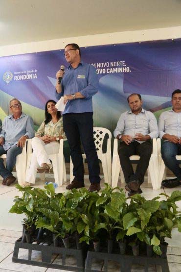 A solenidade de entrega dos maquinários e mudas de café contou com a presença de parlamentares, da prefeita do município, e do presidente da Câmara Setorial do Café, Ezequias Braz da Silva Neto, conhecido por Tuta Café. ” O café já deu tanto resultado para Rondônia e temos a certeza que o agro vai revolucionar o Estado como já vem revolucionando”, avalia Tuta.