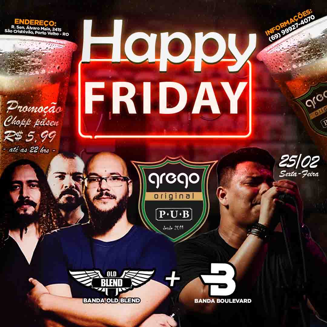 Nesta sexta-feira tem o evento "Happy Friday" no tradicional Pub porto-velhense, o Grego Original, com shows das bandas Old Blend e Boulevard no palco principal da casa mais 'rock and rolll' da capital rondoniense.