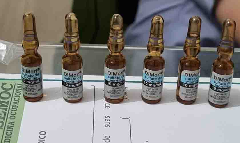 Durante a fiscalização, na clínica foram encontrados vários medicamentos de uso hospitalar, como ampola de morfina, tramal, lidocaína etc. O lote dessas medicações atesta procedência do Hospital de Amor Amazônia, havendo possível desvio desses entorpecentes.