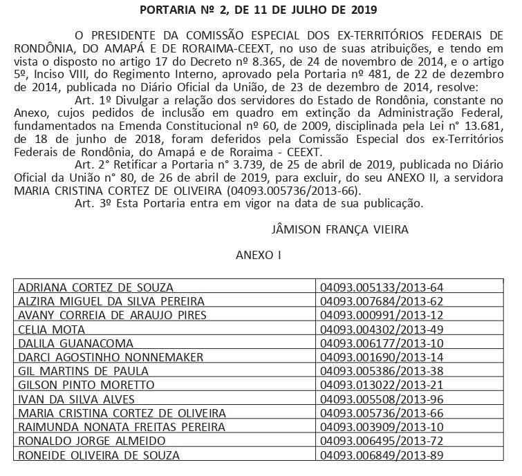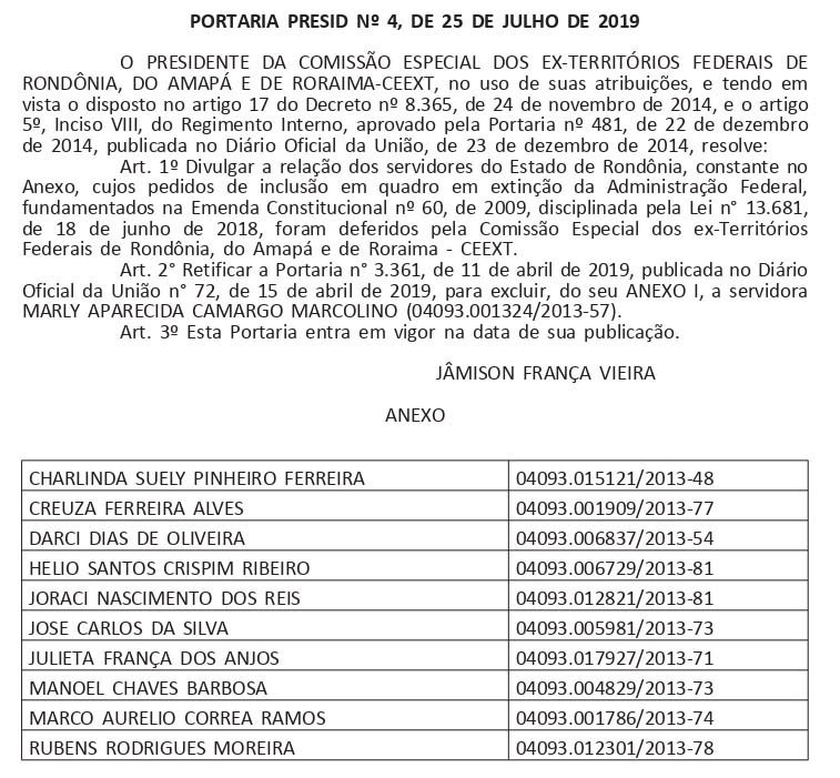 É importante frisar que esses servidores não passarão ao quadro federal de forma instantânea, já que é necessário a expedição da Portaria de enquadramento feito pela Samp - Superintendência de Administração do Ministério do Planejamento.