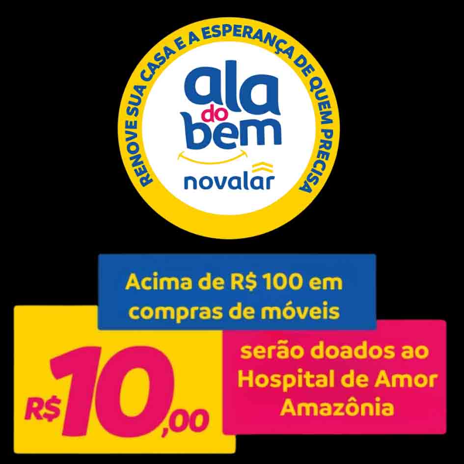A campanha ALA DO BEM NOVALAR, segunda edição, inicia no dia 01 de julho e vai até o dia 31 de agosto de 2024. Cada compra acima de R$100,00 (cem reais) na categoria de móveis irá gerar uma doação de R$10,00 (dez reais) ao Hospital de Amor da Amazônia a ser realizada pela NOVALAR ao final do período da campanha. O resultado final do valor a ser doado será divulgado no site: www.novalar.com.br até o dia 10/09/2024.