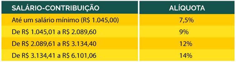 Confira as novas alíquotas na tabela abaixo:
