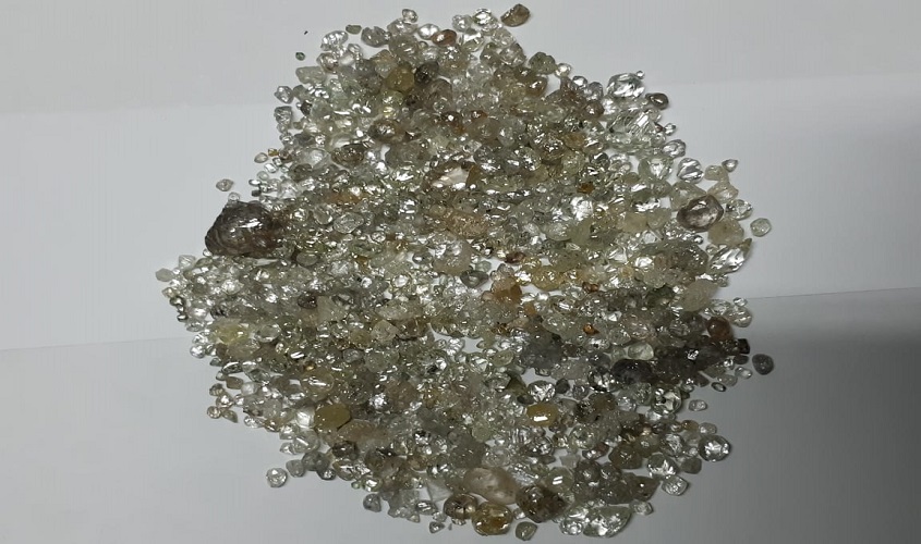 Foi entregue aos policiais um envelope de papel branco revestido com fita transparente e em seu interior continha três recipientes plásticos com aproximadamente 1930 unidades de pedras preciosas (diamantes).