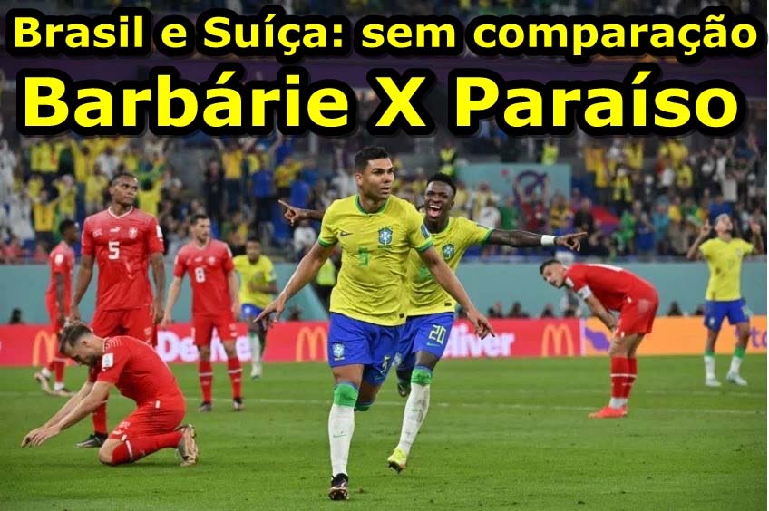 E a Suíça não para de fazer gol em nós. Várias organizações internacionais como Organização Mundial do Comércio, a OMC, Organização Mundial da Saúde, a OMS, Organização Internacional do Trabalho, a OIT, e a Cruz Vermelha Internacional têm sede nas cidades suíças enquanto ninguém tem coragem de ter suas sedes nas violentas e atrasadas cidades brasileiras. Aliás, o terceiro gol suíço em nós está exatamente na violência existente nas duas sociedades. Pelo menos 60 mil cidadãos brasileiros são assassinados todos os anos. Enquanto isso, esse número não passa de 40 mortes anuais lá na Confederação Helvética. A Suíça tem uma qualidade de vida invejável. Pelo décimo ano consecutivo fica entre os três melhores países do mundo para se viver. Zurique é a segunda melhor cidade da Terra. Qual o “sem noção” que escolheria o Brasil para viver?