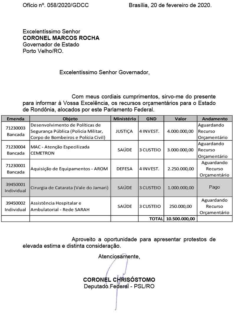 Com recurso federal de “um milhão” de reais enviado pelo deputado Coronel Chrisóstomo ao governo do estado de Rondônia será dado os procedimentos nos atendimentos de exames e cirurgia oftalmológicas, e no dia 09 de dezembro, 2021 será a cerimônia de abertura que acontecerá em Ariquemes, na Policlínica São José, avenida Juscelino Kubitschek, 1294, setor 02 a partir da 7:30 horas.