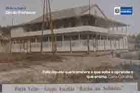 FOTO DO DIA: Dentro de um ano o Grupo Escolar Barão do Solimões (foto da1ª sede, em local diferente do atual) que em 1923 era citado em relatório do Superintendente (prefeito) Joaquim Tanajura como única estadual em Porto Velho (então município amazonense), estará completando 100 anos de existência. O colégio, rebatizado “Escola Estadual de Ensino Fundamental e Médio”, foi por duas vezes local de grandes acontecimentos políticos, o primeiro em 1940 quando o prédio, construído por ordem do então diretor-geral da Estrada de Ferro Madeira-Mamoré Aluízio Ferreira, foi inaugurado pelo presidente Getúlio Vargas (), e o segundo, em 1944, foi local para a instalação do Território Federal do Guaporé () e a primeira sede de governo do Território. O patrono é o advogado Manuel Francisco Machado, paraense de Óbidos.