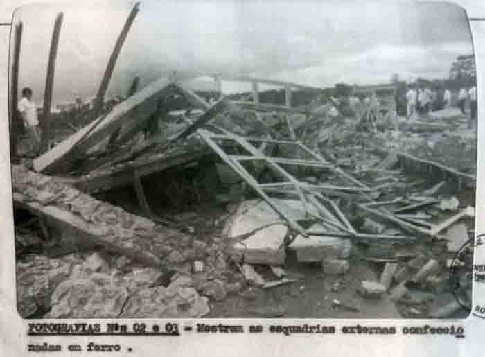 FOTO DO DIA: Há 40 anos o recém-nascido Estado de Rondônia, com menos de 45 dias de vida despertou, naquele 3 de fevereiro de 1982, de luto. Em Cacoal, cuja zona urbana contava com 13 mil habitantes o quartel da Polícia Militar explodiu, matando 10 militares, inclusive o comandante do contingente e um civil a caminho do trabalho. Uma empresa contratada para fazer calçamento nas ruas usava como depósito de dinamite o pequeno paiol da guarnição. O prefeito Clodoaldo Nunes contou ano passado ao site expressaorondonia.com.br que ainda estava dormindo. Àquela altura a causa mais provável teria sido um curto-circuito na fiação do paiol, gerado pela explosão a única lâmpada pendurada no teto do paiol. Praticamente nada ficou inteiro no quartel (Foto site tribunapopular.com.br).