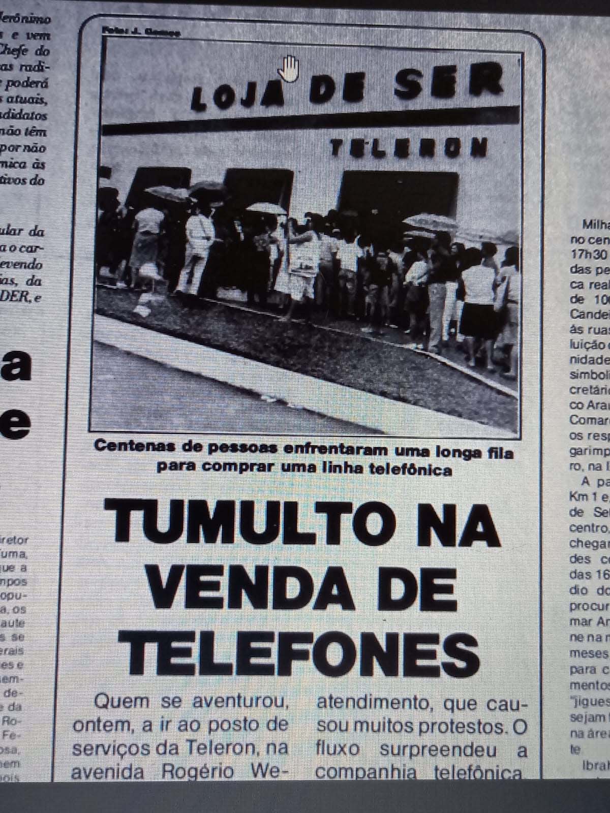Nem faz muito tempo, uns 30 anos, ter um telefone em casa era um luxo, apesar de muito necessário. E quando a Teleron abria inscrições para venda de terminais (linha), o número de interessados era maior do que a capacidade de atendimento, como aconteceu em janeiro de 1990.