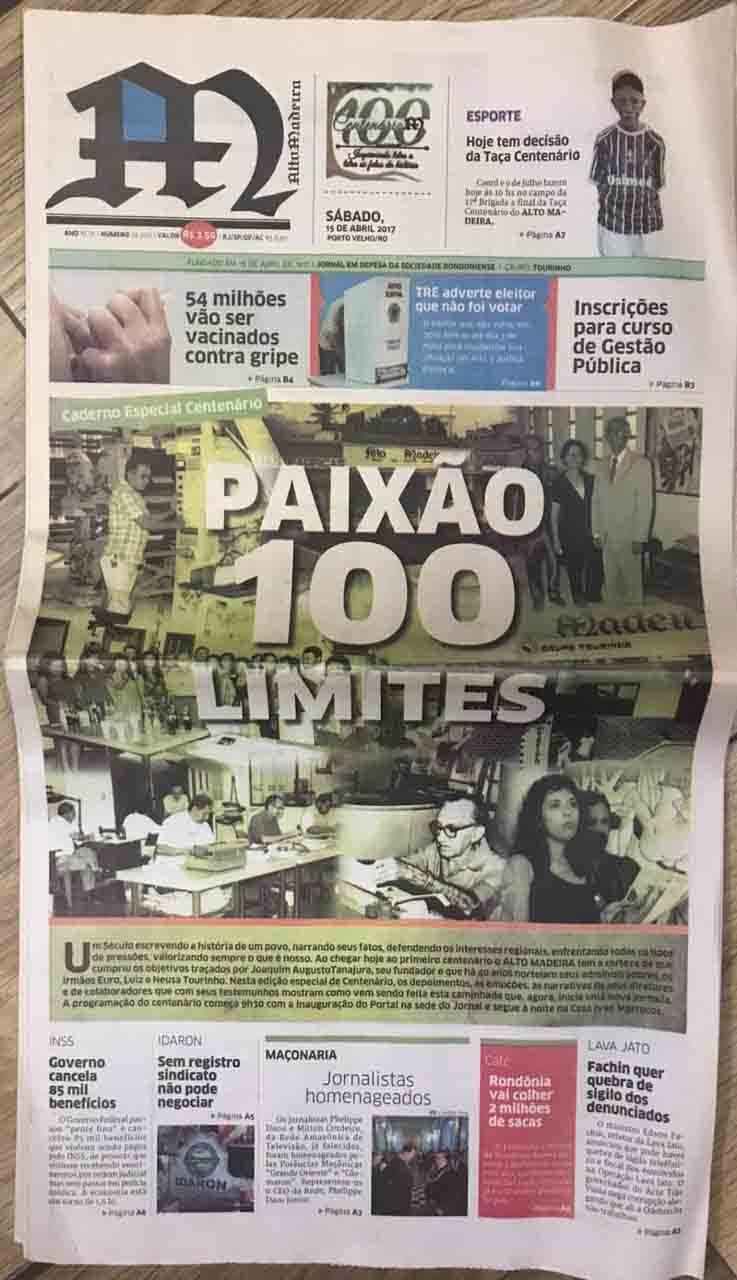 2017 – Circula, tendo como manchete principal “Paixão 100 Limites”, a edição de centenário do Jornal Alto Madeira.