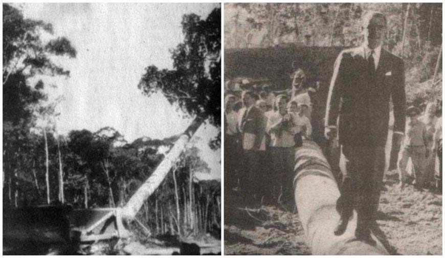 A árvore separava as turmas de trabalhadores – a saída de Cuiabá e outra de Porto Velho – na abertura da BR-29 (364). Conversei com várias pessoas que estavam presentes, como o jornalista Euro Tourinho (jornal Alto Madeira) que garantia ter sido autor desta foto, cujo filme entregou a um repórter da revista “O Cruzeiro”.