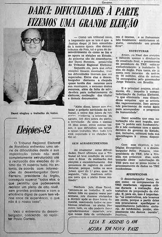 1982 – A estimativa de faltosos à 1ª eleição estadual foi de 30% do eleitorado, mas no todo, apesar de alguns problemas, o dia foi tranquilo.
