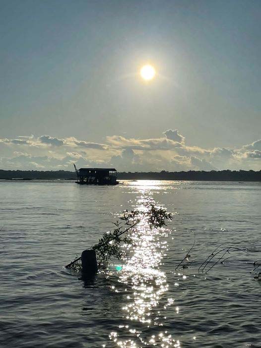 FOTO DO DIA: A Natureza, sempre ela, oferecendo a nós, mortais como quaisquer ouros seres vivos, um espetáculo que só ela pode construir. Ao fundo as nuvens parecem dançar, mostrando que elas também fazem parte do espetáculo, observadas pela imensa lua cheia que se projeta sobre a floresta e se derrama fazendo da bacia do grande Rio Madeira, um espelho d’água imponente, traçando uma linha onde o luar se reflete de um lado ao outro do grande rio, dá a todos a dimensão do que a natureza pode proporcionar para os olhos de cada um, mas que também nos lembra outro fato perigoso, e há muitos anos denunciado por ambientalistas e jornalistas, a presença de uma draga buscando ouro. (F. Acervo Rondônia Minha Querida Rondônia).