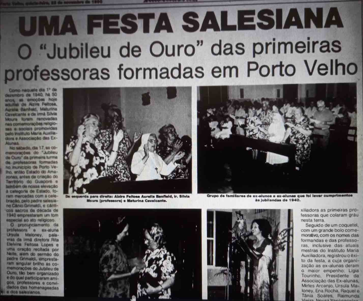 Em 1990 completou-se 90 anos da diplomação das 7 primeiras professoras formadas no então Território do Guaporé, em 1940, feito importante conseguido graças à coragem da instituição Salesiana, da força de vontade de suas freiras, e da compreensão dos pais que acreditaramem oportunizar suas filhas um curso profissionalizante.