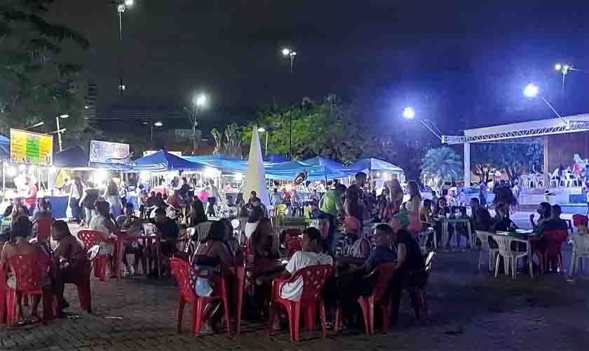 FOTO DO DIA: Um ponto de encontro nas noites de domingo em Porto Velho é a “Feira do Porto”, oferecendo oportunidade de comidas típicas e mostras de artesanato. Funcionando na Praça Aluízio Ferreira, no Bairro Caiari, citado como o mais antigo conjunto habitacional do Brasil (1940) a feira recebe centenas de pessoas no horário das 16 até 22 horas. A Praça Aluízio Ferreira – homenagem ao primeiro governador do Território Federal e três vezes deputado federal, tinha inicialmente outro formato, incluindo um pequeno lago onde se encontravam exemplares de quelônios e pirarucus, mas passou por várias reformas, incluindo a construção de uma lanchonete (onde agora está uma espécie de palco para apresentações musicais), além de uma quadra de esportes e um “half” para a prática de skate, esses últimos depois destruídos para ampliar o espaço dos feirantes.