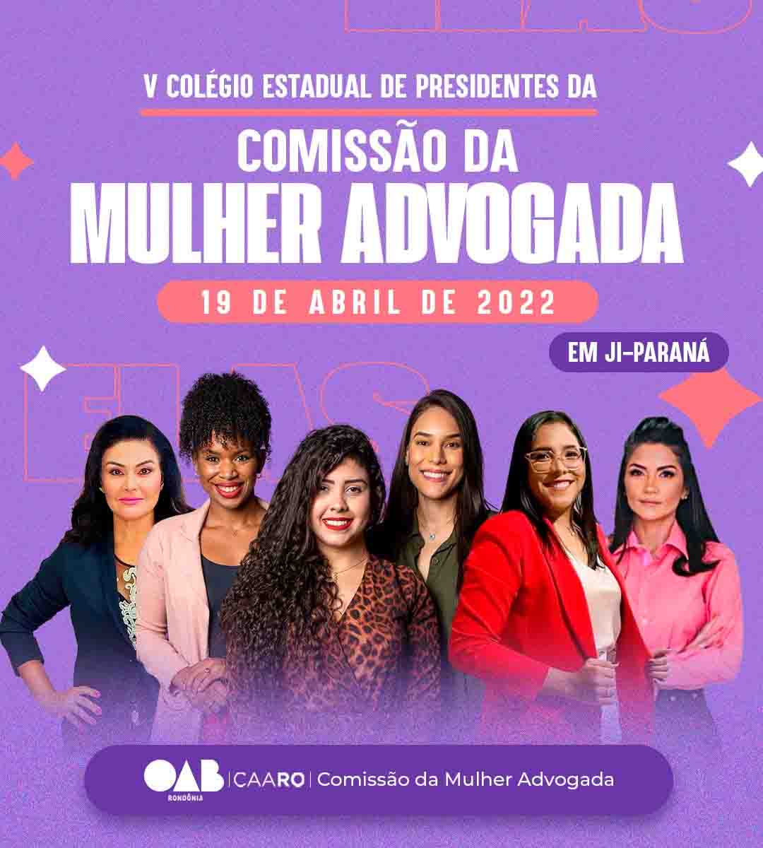 A advocacia feminina vai se reunir na tarde desta terça-feira (19), em Ji-Paraná, onde serão realizados o V Colégio de Presidentes da Comissão da Mulher Advogada e o lançamento da campanha nacional Advocacia Sem Assédio.
