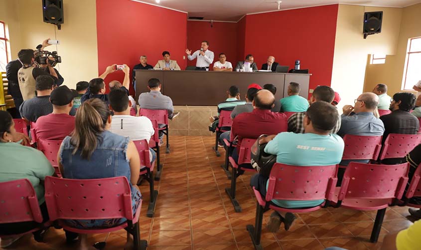 Porto Velho, Rondônia - O prefeito Hildon Chaves esteve, na manhã desta quinta-feira (5), na assembleia dos trabalhadores do transporte coletivo, na sede do Sindicato dos Trabalhadores do Transporte Urbano (Sitetuperon), onde apresentou proposta para o repasse de recursos que seriam destinados para a empresa de ônibus.