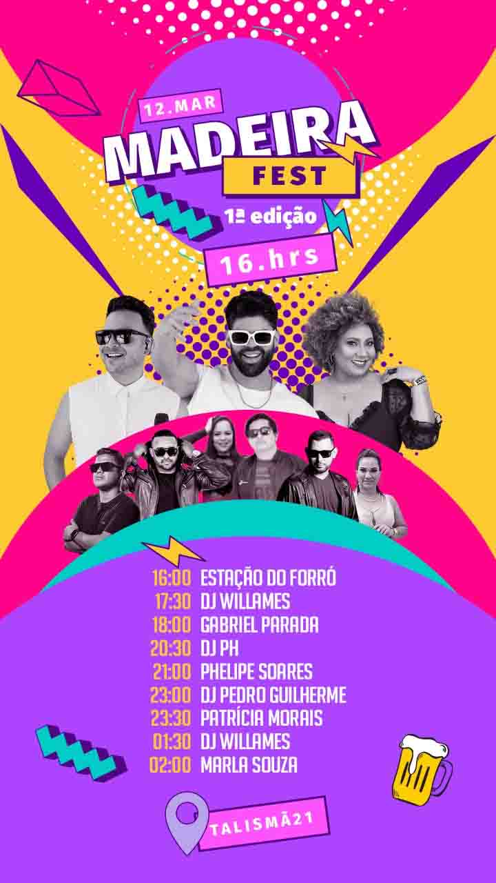 A ST eventos, do empresário Sinezio Tapajós, preparou para este sábado, dia 12, a partir das 16h, a primeira edição do evento "Madeira Fest", com nove atrações de diversos estilos músicais se apresentando em cima do trio elétrico.