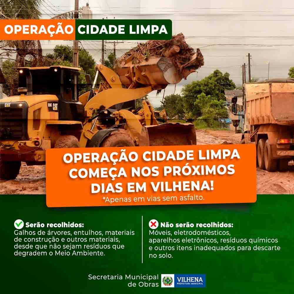 Acompanhe abaixo a ordem prevista dos bairros que serão atendidos pela operação: São Jerônimo, Bodanese, Parque Cidade Jardim Cidade 1 e 2, Marcos Freire, Cristo Rei, Moisés de Freitas, Jardim Primavera, Setor 19, Jardim das Oliveiras, Parque Novo Tempo, BR-174, Bela Vista, Alto dos Parecis, Barão do Melgaço 1, 2 e 3, Setores 22 e 23, Novo Horizonte, Setores 06, 08 e 09, Nova Vilhena, Ipê, Hípica, Iquê e Bandeirantes, Vila Operária, Tancredo Neves, Embratel e Belenzinho, Assosete e o trecho da avenida 1º de Maio que não possui asfalto.