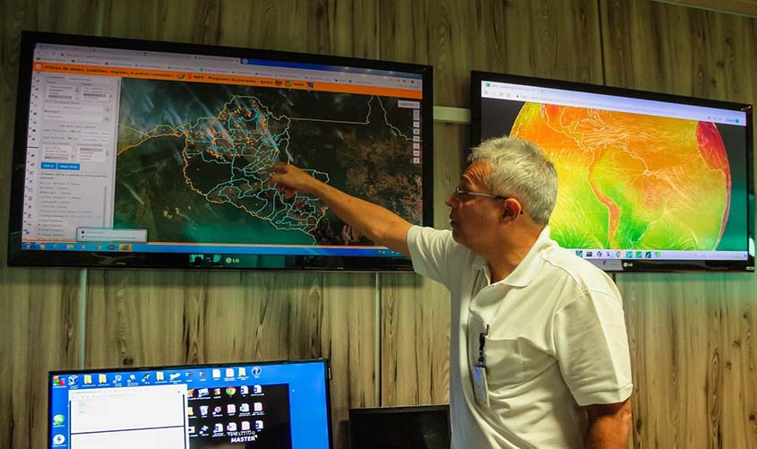 Através de uma sala de situação, técnicos da Sedam conseguem rastrear pontos de desmatamento e focos de calor em tempo real, de forma que as equipes em campo chegam a flagrar o crime e punir os culpados.