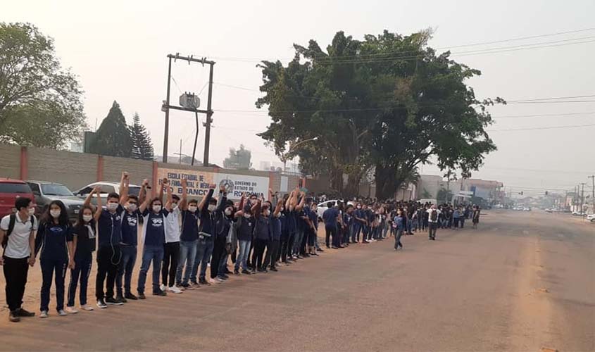 Os alunos da Escola Rio Branco de Porto Velho que participaram deste protesto mereciam ganhar um prêmio pela sua coragem e pela bravura em mostrar para o mundo o que estão fazendo com a nossa floresta amazônica. Nenhuma autoridade daqui certamente vai valorizar o que eles fizeram. Mas se essas ações isoladas crescerem, num futuro próximo, os incendiários de plantão e também o agronegócio vão pensar duas vezes antes de acender o primeiro fósforo. Muitos desses “meninos de ouro” não estavam preocupados apenas com a sua respiração naquele momento, tenho certeza disso. Estavam todos preocupados com o seu próprio futuro e o futuro das próximas gerações. Neste ritmo alucinado de colocar fogo na floresta tropical e de destruir a Amazônia, em pouco tempo não sobrará uma árvore sequer. Obrigado, alunos e comunidade da Escola Rio Branco! Se eu não estivesse no JBC, queria estar com vocês.