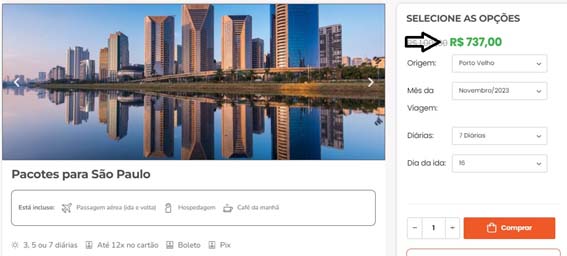 Para viajar de Rondônia para os destinos turísticos garantindo economia a dica é comprar pacotes de viagens com antecedência. Neste post a nossa equipe encontrou voos de ida e volta de Porto Velho para São Paulo, além de 7 diárias na capital paulista, por apenas R$ 737. Essa promoção é para viagem em novembro de 2023. (Veja detalhes na imagem abaixo). Acesse aqui essa promoção.