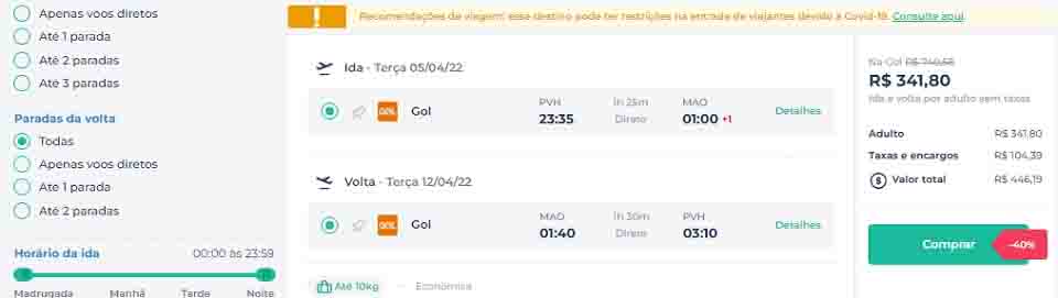 - Chegando em Manaus por R$ 446