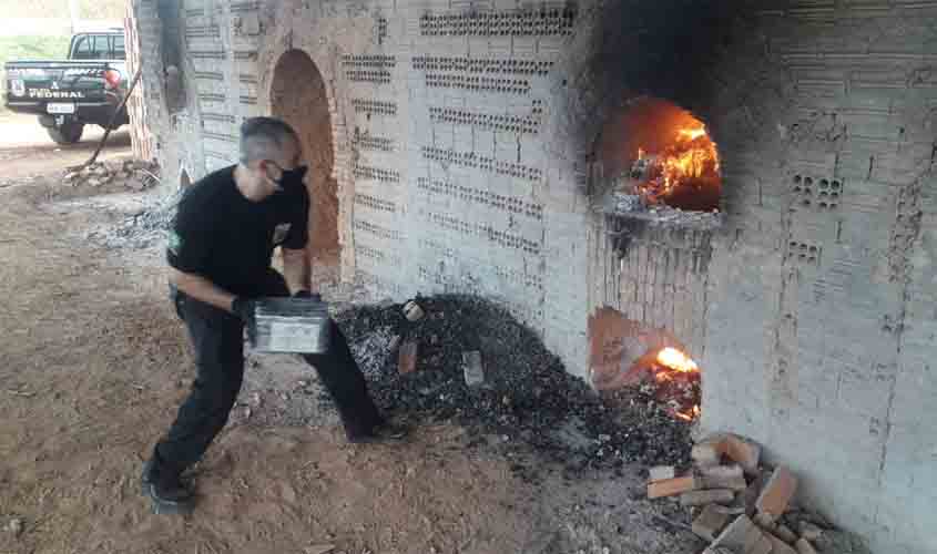 PF incinera 579 quilos de cocaína aprendidos em avião interceptado