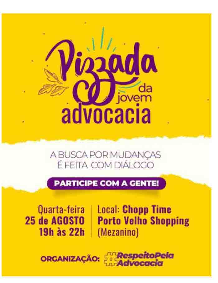 O encontro acontece no ChoppTime – Porto Velho Shopping (Mezanino), localizado na Avenida Prefeito Chiquilito Erse, 3288, bairro Flodoaldo Pontes Pinto. Além de promover a integração entre a juventude, a pizzada também tem o objetivo de compartilhar experiências e ideias com o intuito de construir uma advocacia a partir dos múltiplos olhares e perspectivas, sempre olhando para o jovem advogado.