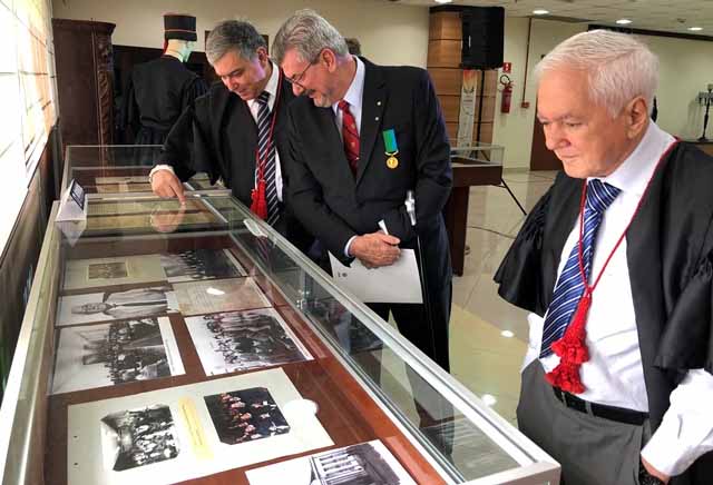 Logo após a sessão, o ministro homenageado e mais dois convidados do Congresso, a ministra Daldice Santana e o desembargador paranaense Roberto Portugal Bacellar, foram convidados a conhecer o Memorial do Judiciário, recém reativado no hall do 5º andar do edifício-sede.