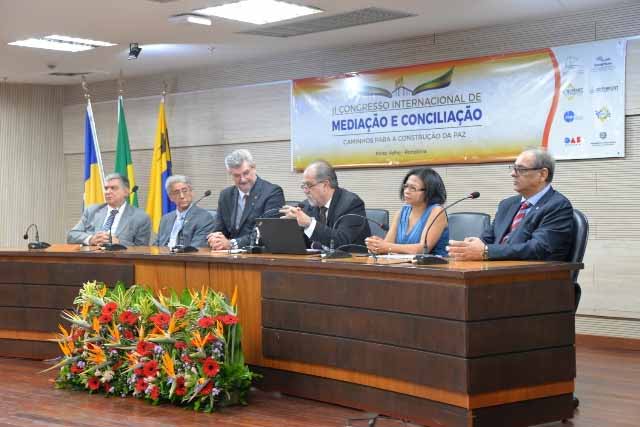Durante a abertura do II Congresso Internacional de Mediação e Conciliação, o presidente do TJRO, Walter Waltenberg, homenageou os magistrados Maria Abadia e Alexandre Miguel, a quem considera que, “para além de todo o interesse numa prestação jurisdicional célere, exercem a atividade de conciliação e mediação com imensa paixão”.