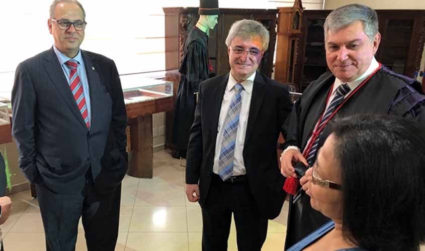 O desembargador Marcos Alaor Diniz Grangeia, diretor da Escola da Magistratura, também parceiro na organização do evento, acompanhou os magistrados.