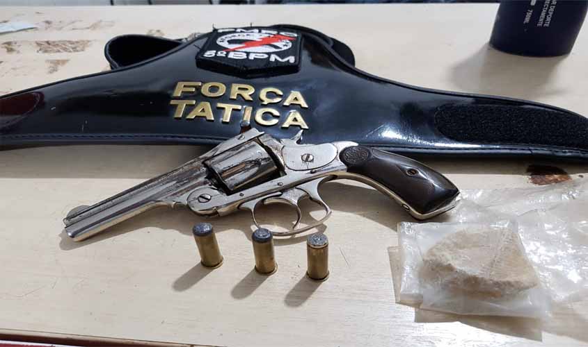 Porto Velho, Rondônia - Alexandre Gomes Soares, 25 anos, foi preso no início da noite de Segunda-feira (15), armado com um revólver calibre 38 com três munições picotadas e uma porção de cocaína, após trocar tiros com uma guarnição da Força Tática do 5° batalhão em uma chácara na linha 17 às margens esquerda da BR 319 sentido Humaitá, região rural.
