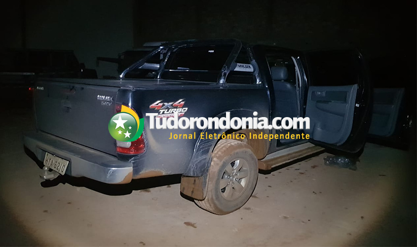 Foi dada ordem de parada, sendo que eles ainda tentaram fugir. Durante a revista foi encontrada com os suspeitos uma chave que dava acesso ao portão do galpão. Quando abriram, os policiais se depararam com três caminhonetes F1000 roubadas, uma saveiro roubada de um militar, a Hilux da vítima que havia sido furtada e uma cabine de caminhão que pode ter sido furtada.