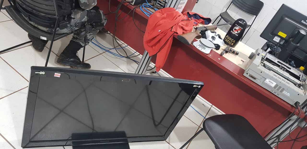 Os policiais se deslocaram para o endereço e avistaram Darley tentando fugir, mas ele acabou preso. Durante revista no imóvel, foram encontradas duas armas de fogo- uma espingarda e uma outra arma de fabricação caseira -, além do televisor roubado. O veículo foi achado dentro do matagal, por trás do residencial.