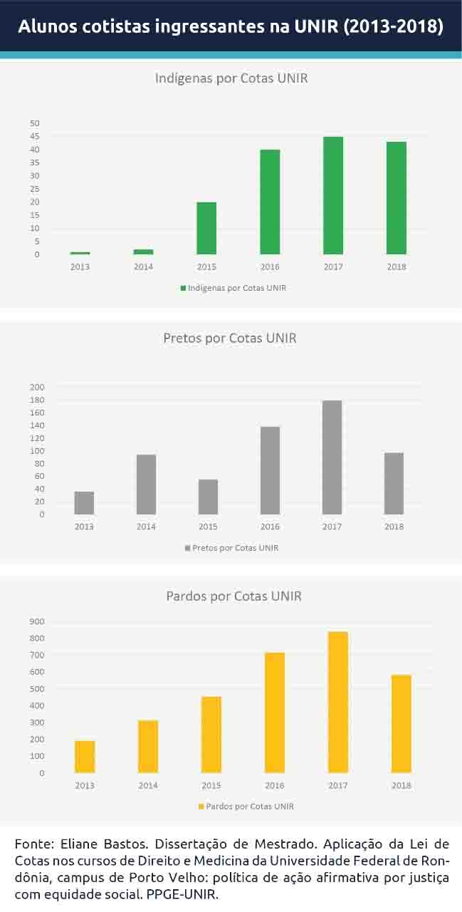 Os impactos são visíveis nos corredores da universidade, atualmente nas salas de aula virtuais, em função do ensino remoto emergencial, o que é reflexo dos números expressivos alcançados em menos de uma década. A quantidade de alunos pretos matriculados na UNIR cresceu 397% desde 2013, e o de alunos pardos teve um acréscimo de 389%, dados que foram compilados na dissertação defendida por Eliane Bastos. No caso de indígenas, o impacto foi ainda mais profundo, havendo um aumento de incríveis 13.000% no número de alunos matriculados.