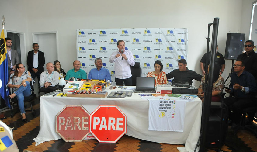 O prefeito Hildon Chaves fez a entrega pra a Secretaria Municipal de Trânsito, Mobilidade e Transportes (Semtran) de equipamentos para as ações de educação no trânsito e sinalização, nesta sexta-feira (1), no auditório do Prédio do Relógio (sede do poder executivo).