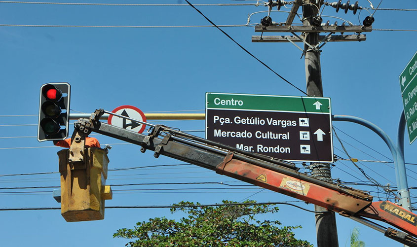 Foram executadas manutenções no parque semafórico da cidade e implantação de três novos semáforos com sistema de detecção de veículos, sendo um na avenida Calama com rua Belém, outro na Calama com avenida Farquhar e terceiro na Calama com avenida Governador Ari Marcos.