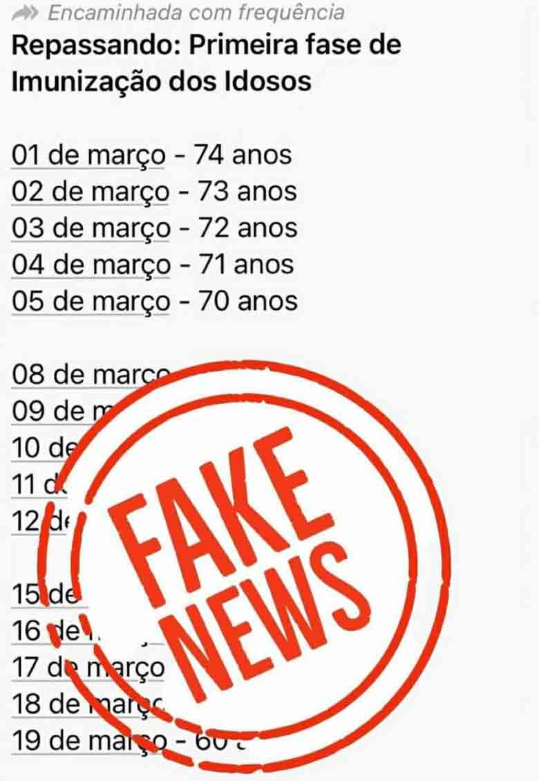 Os falsos calendários informam, por exemplo, datas para a vacinação da primeira e segunda dose em pessoas de 60 a 75 anos. Esse fato tem gerado muita angústia e ansiedade, principalmente a esse público. Sem saber para onde ir, há idosos que saem de casa em busca do imunizante nas unidades de saúde.