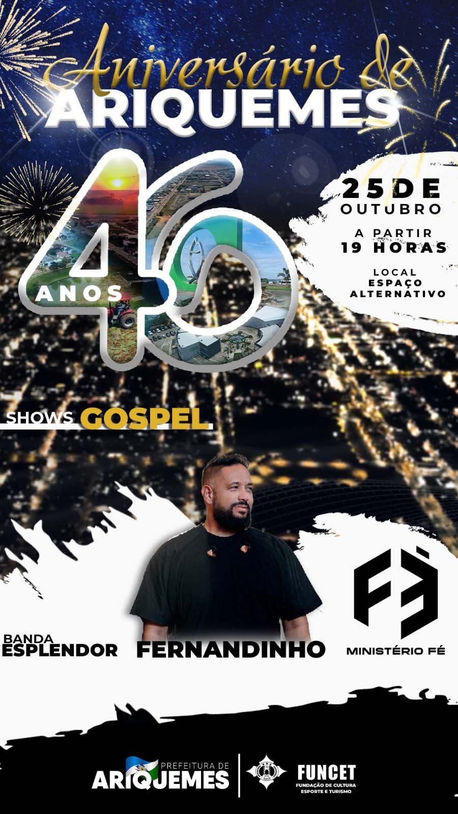 19h- Espaço Alternativo, Show do Cantor Fernandinho, Banda Esplendor e Ministério da Fé.