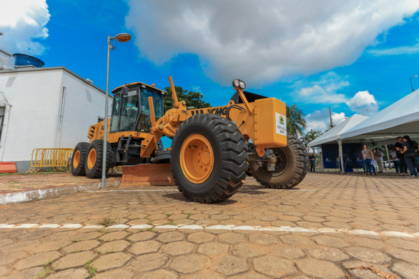 Foram entregues duas retroescavadeiras, uma pá carregadeira e mais uma motoniveladora (patrola)