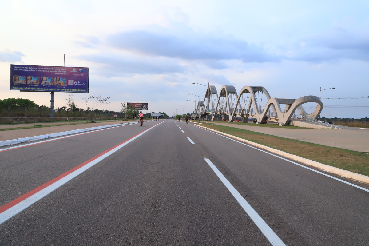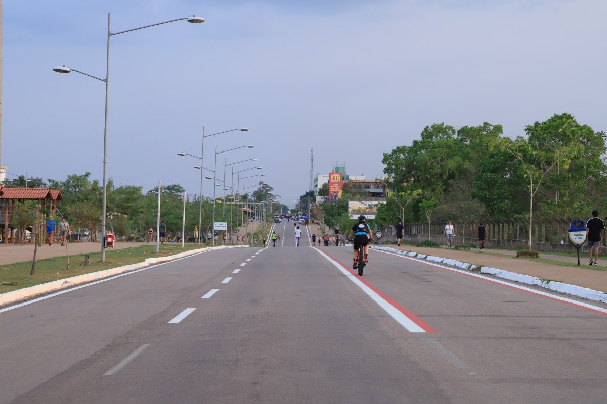São dois quilômetros e 300 metros de ciclofaixa interligando o Aeroporto Governador Jorge Teixeira de Oliveira à ciclorrota Lauro Sodré e a Ciclovia direcionada ao Parque da Cidade.