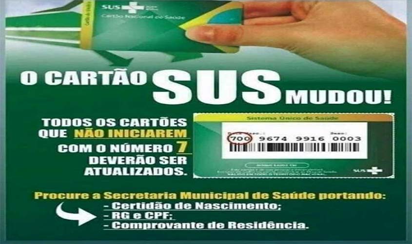 Outro fator importante são os cartões que não começarem com número 7, o usuário do SUS, precisa atualizá-lo nas unidades de saúde.