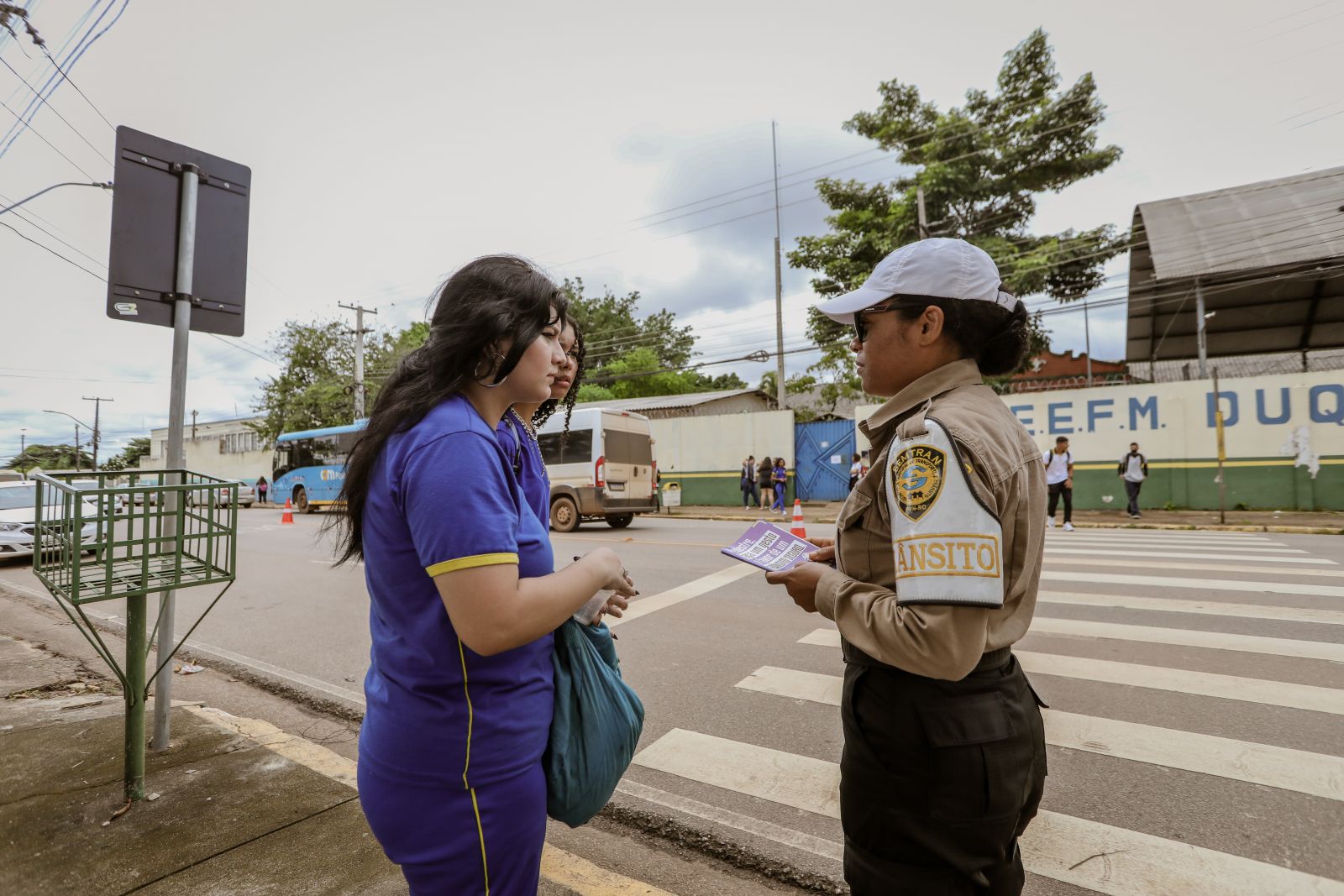 Visando proporcionar mais segurança aos pedestres, especialmente estudantes no perímetro escolar, em Porto Velho, agentes da Secretaria Municipal de Trânsito, Mobilidade e Transportes (Semtran) realizam a Campanha Volta às Aulas, importante trabalho de educação e orientação à comunidade estudantil, especialmente quanto à utilização das faixas de pedestres.