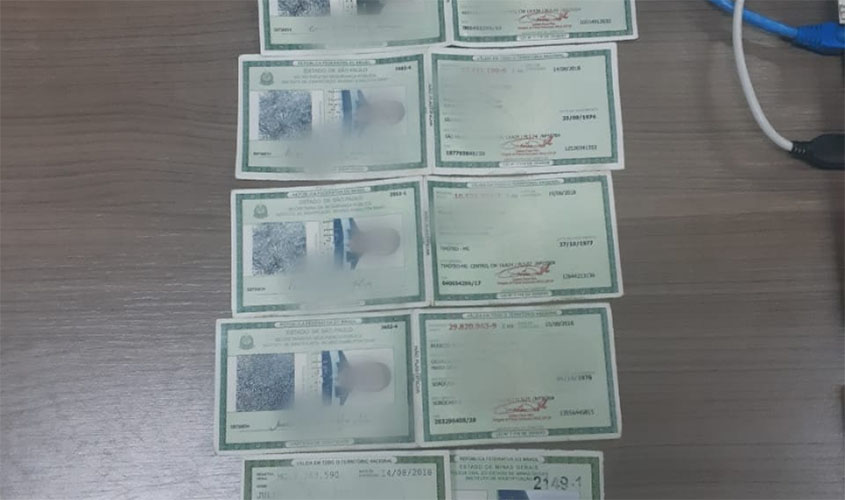 Escondidos dentro do painel do carro, os policiais encontram 7 carteiras de trabalho e 15 documentos de identidade, todos falsificados e em nome dos 4 ocupantes. Além disso, foram encontradas diversas notas fiscais de bens comprados em nome de terceiros, deixando claro que os documentos falsos eram utilizados para cometer golpes em Porto Velho (RO).