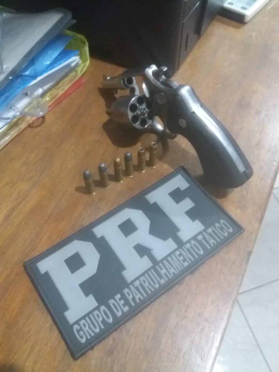 Com o indivíduo de 33 anos, que é inabilitado, os policiais encontraram um revólver calibre 38 com numeração raspada e 6 munições intactas. O homem foi preso pela prática dos crimes de porte ilegal de arma de fogo de uso restrito (art. 16 do Estatuto do Desarmamento) e de dirigir veículo, sem possuir habilitação, gerando perigo de dano (art. 309 do CTB).
