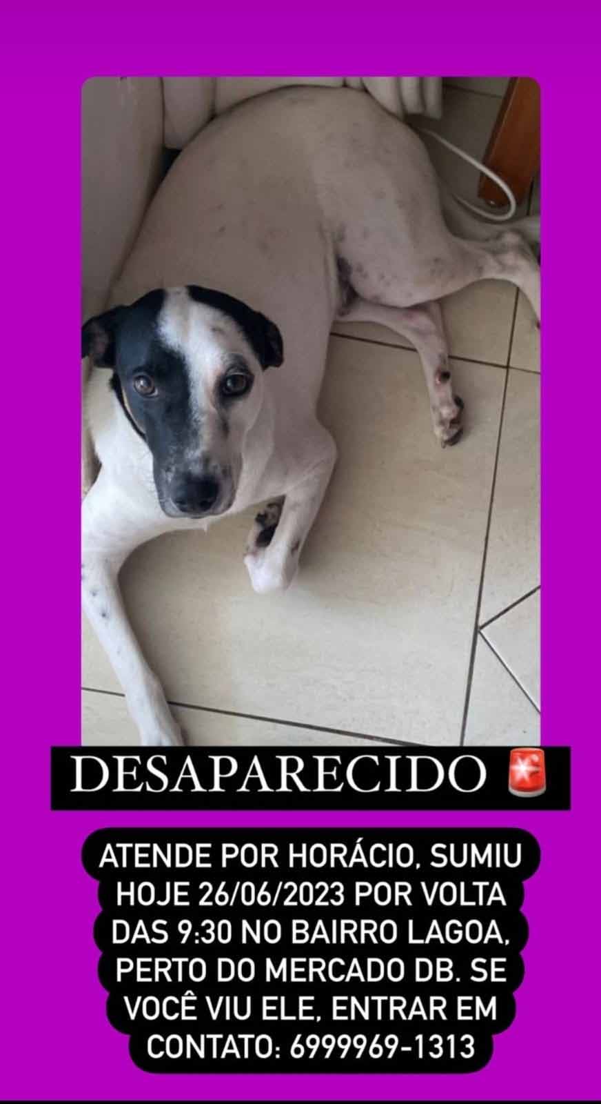 O cãozinho Horácio está desaparecido desde o dia 26 de junho. Ele saiu de casa, próxima ao supermercado DB, no bairro Lagoa, para uma voltinha na rua e não foi mais visto. Sua tutora fez buscas pelas ruas próximas, mas sem sucesso.