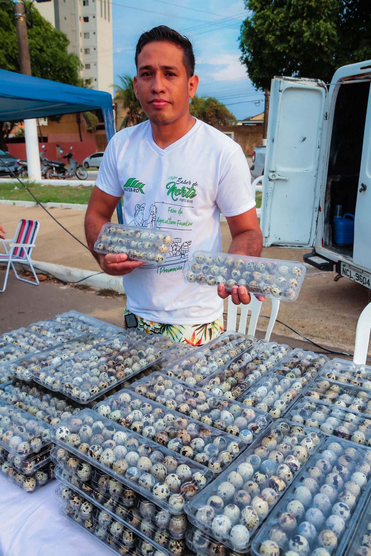 Jonas Maciel é da Gleba Aliança, onde mantem uma granja de codornas. “A Emater nos dá toda a assistência que precisamos, por isso não só vendemos nossos ovos em