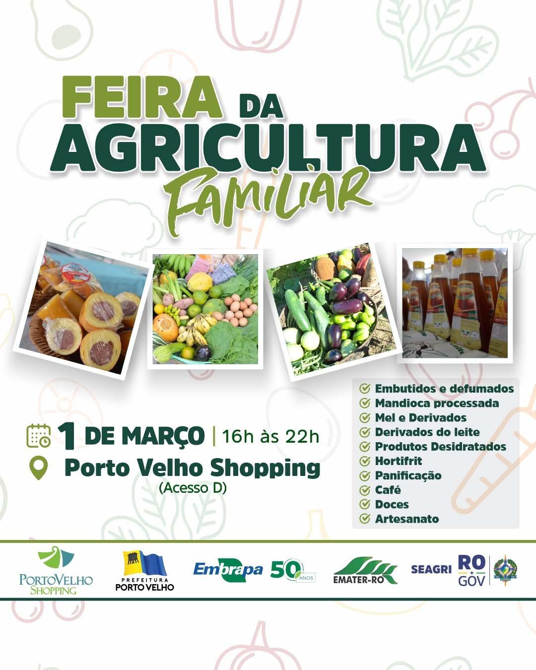 De produtos embutidos e defumados até hortifrutigranjeiros, queijos e doces, além de uma seleção de itens artesanais, os visitantes terão a oportunidade de explorar a vasta e diversificada produção das agroindústrias familiares, na Feira da Agricultura Familiar que acontece nesta sexta-feira (1°), no acesso D do Porto Velho Shopping, das 16h às 22h.
