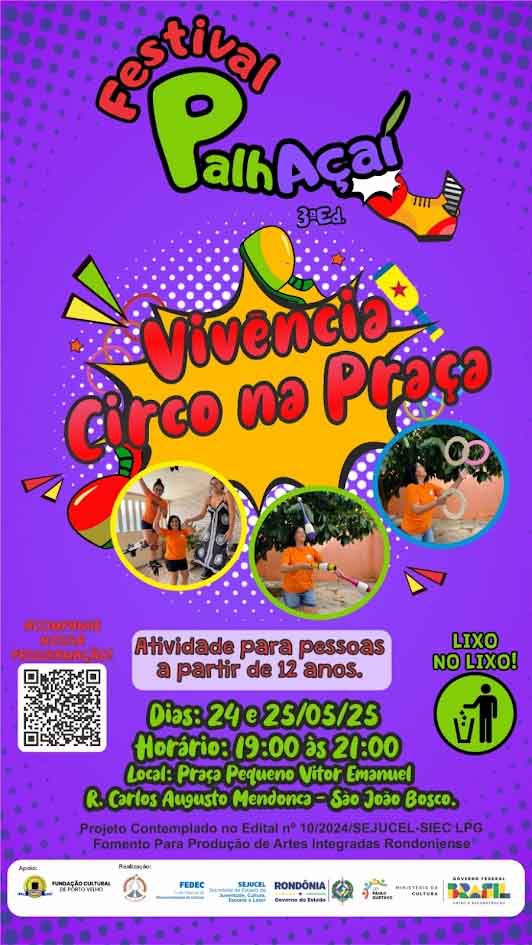 Os participantes têm a possibilidade de aprender e treinar técnicas circenses como malabares e perna de pau, em uma experiência prática e divertida para todos os participantes. O curso utiliza o espaço público da praça, garantindo acessibilidade, pois haverá intérpretes de Libras, promovendo a interação com a comunidade surda.